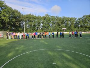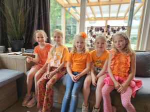 Het tentenkamp stond dit jaar in teken van ‘oranjekoorts’. Door het EK en de voetbalwedstrijd Nederland-Franrkijk op vrijdagavond had iedereen zijn mooiste oranje-outfit aan. Nadat de tenten op vrijdagmiddag werden opgezet, met hulp van wat ouders en de leiding, kon het feest beginnen. Het beloofde wederom een tentenkamp te worden met veel korfbal, spelletjes, gezelligheid, patat eten en natuurlijk weinig slaap.